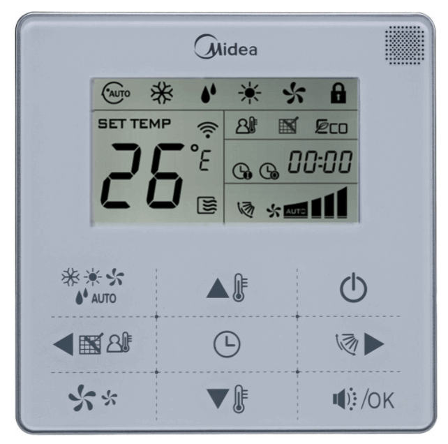 Пульт управления Mdv упрощает управление системой кондиционирования. Благодаря двухпроводному подключению есть вариант для одного внутреннего блока установить два пульта управления, тем самым создавая возможность комфортного управления несколькими пользователями с разных расстояний.