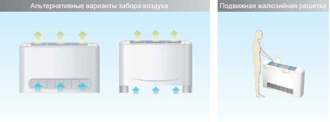 - Подвижная жалюзийная решетка обеспечивает широкий диапазон угла подачи воздуха