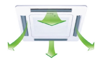Четырехпоточная подача позволяет равномерно распределять воздух по всему объему помеще- ния, обеспечивая высокий уровень комфорта. |