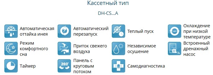 Кассетные кондиционеры производителя Dahatsu серии DH-CS H представлены широким ассортиментом, в котором каждый потребитель может выбрать необходимую ему технику. Все модели оснащены двухступенчатой ??системой фильтрации. Оборудование отличается оптимальным распределением воздуха и автоматическим размораживанием.