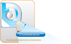 - Положение жалюзи SWING - 12 фиксированных положений жалюзи и 12 диапазонов покачивания;