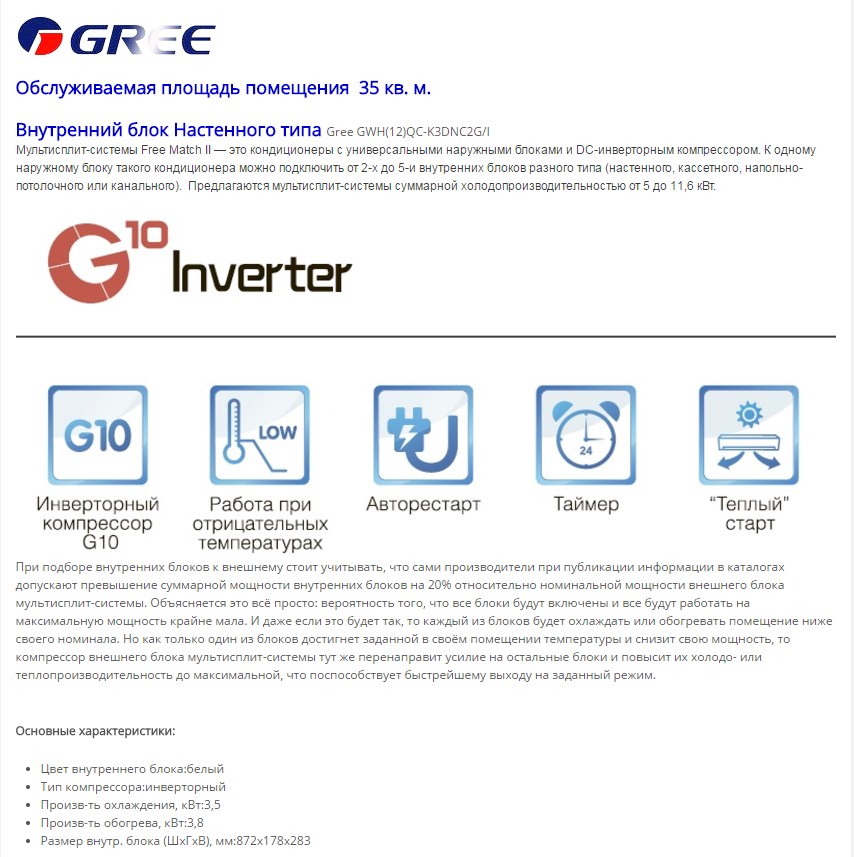 Габариты внутренний блок (ВхШхГ), см