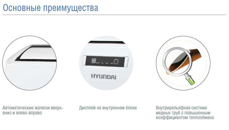 Напольно-потолочные сплит-системы Hyundai обеспечивают полноценное управление температурой даже в больших помещениях. На внутреннем блоке полупромышленного кондиционера расположен дисплей с индикатором текущей и заданной температуры воздуха. Охлажденный воздух распределяется по всем направлениям автоматически.
