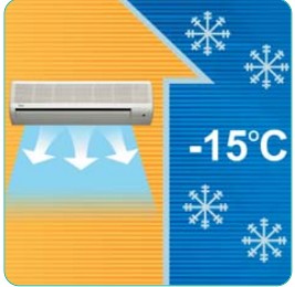 Напольно-потолочные сплит-системы устроены таким образом, что потоки холодного воздуха распространяются либо вдоль стены, либо по потолку, в зависимости от способа установки. В линейке представлены модели от 3,5 до 17,6 кВт по холодопроизводительности, это позволяет использовать их как в небольших помещениях, так и в больших залах и павильонах.