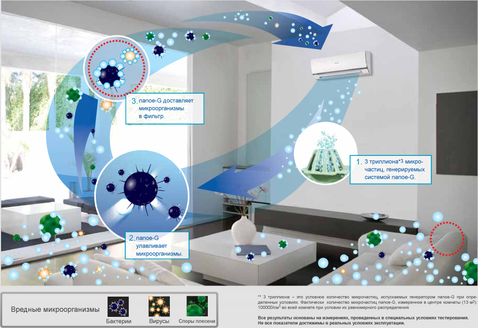 Серия кондиционеров E-RKD оборудована самой современной системой фильтрации Nanoe-G, которая задерживает не только крупные загрязнения, но и микробы, аллергены, споры плесени и другие вредные микроорганизмы, создавая тем самым здоровую атмосферу в помещении.