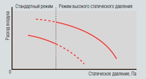 В самых мощных блоках на 22,4 и 25 кВт статическое давление изменяется с помощью пульта ДУ от 0 до 300 Па.