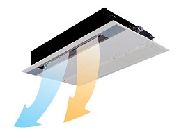 Однопоточный кассетный блок оснащен механизмом качания жалюзи. Воздушная заслонка автоматически меняет направление воздушного потока, равномерно распределяя его.