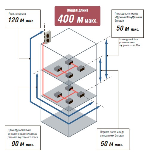 Особая система распределения хладагента позволяет увеличить общую протяженность трассы до 400 м и предоставляет широкие возможности при проектировании систем.