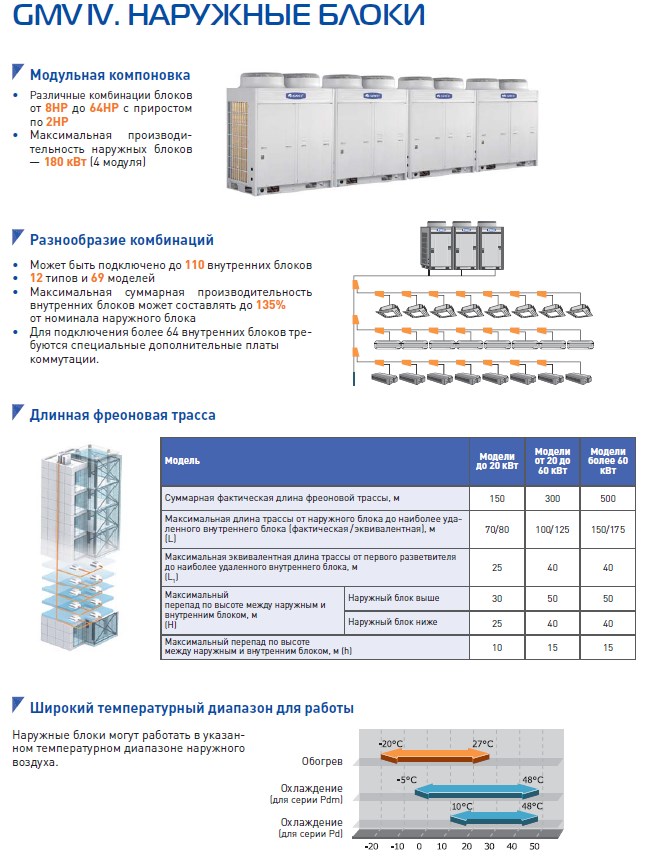 - Возможность объединения десятков наружных блоков в одну систему с централизованным управлением
