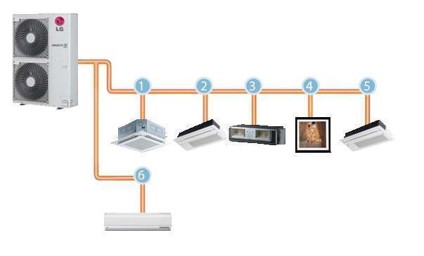 К одному наружному блоку можно присоединить несколько внутренних блоков с суммарным индексом производительности 130%.