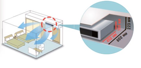 Уменьшенный корпус внутреннего блока позволяет производить установку в условиях минимального свободного пространства.