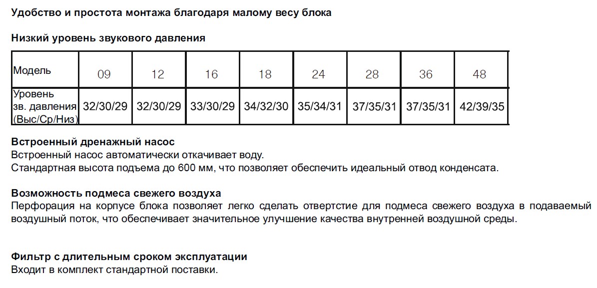 Уровень шума (внутренний блок), дБ(А)