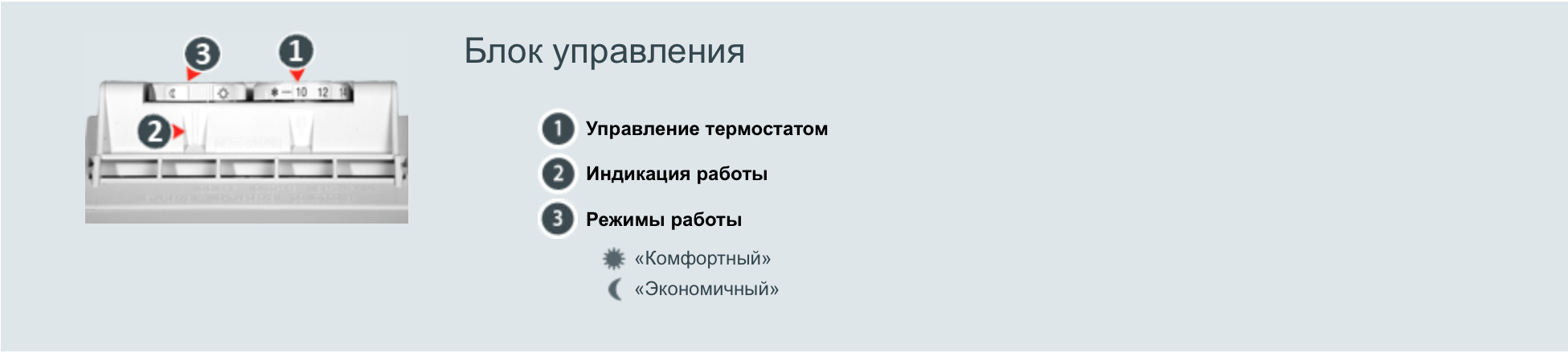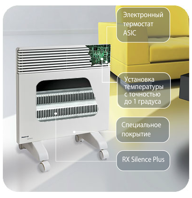 Электронная автоматика выдерживает перепады напряжения от 150 В до 242 В, что наиболее актуально при частых «скачках» напряжения. На случай возможных перебоев с электропитанием в обогревателях предусмотрена функция авторестарта, восстанавливающая работу прибора в прежнем режиме.