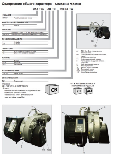 - Все горелки на легком (дизельном) топливе поставляются укомплектованными, включая фильтр и гибкие шланги, до мощности 6 МВт - в единой упаковке.