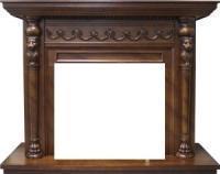 Львиные головы из дерева, которые используются в отделке портала служат для того, что бы дополнительно подчеркнуть роскошь и общую монументальность каминной композиции. Растительный орнамент, расположенный в верхней части каминного обрамления добавляют ему изящества и утонченности, а круглые навершия декоративных столбов, которые расположены по краям очага на резных постаментах, придают камину торжественный вид.