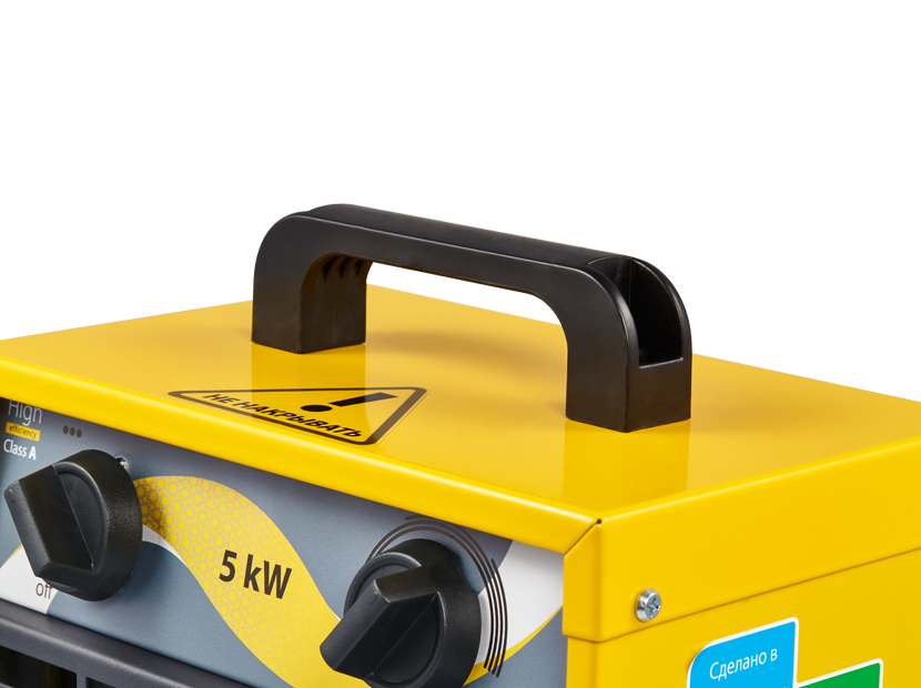 Электрическая тепловая пушка Ballu (Баллу) BHP-ME-5 имеет удобное и простое механическое управление. На верхней части корпуса расположены две ручки: одна предназначена для регулировки термостата, другая же дает возможность выбрать необходимую мощность работы. Обратите внимание: тепловентилятор снабжен защитой от короткого замыкания. При токе выше 25 А агрегат автоматически отключается от сети.