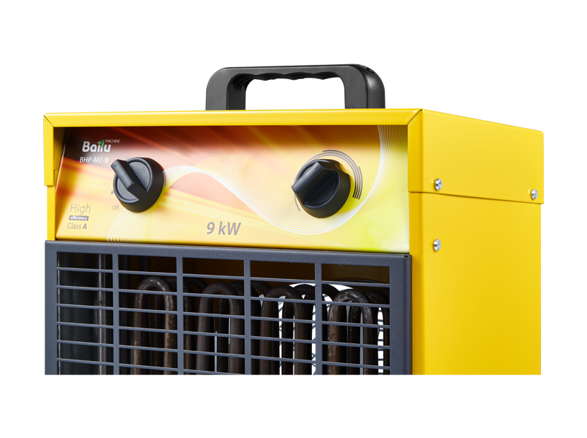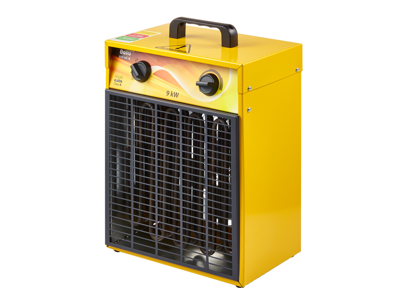 Мощная электрическая тепловая пушка Ballu (Баллу) BHP-ME-9 легко обогреет помещение, площадь которого достигает ста квадратных метров. Более того, в режиме вентиляции прибор эффективно просушит стены и потолок, что бывает особенно актуально при проведении ремонта. Стоит отметить, что данная модель снабжена серьезной защитой: встроенный термостат следит за температурой корпуса тепловентилятора; электроизоляция класса I исключает возможность поражения электрическим током; автоматический выключатель на 40 А защищает пушку при коротком замыкании в электросети.