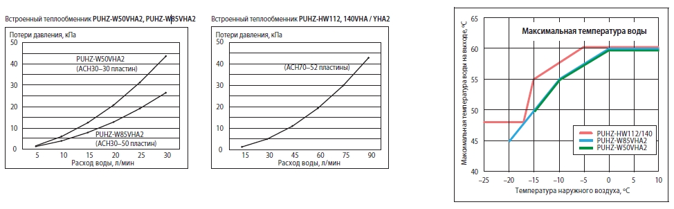 Технические характеристики наружных блоков Mitsubishi Electric PUHZ-W50VHA , PUHZ-W85VHA , PUHZ-HW112YHA , PUHZ-HW140VHA и PUHZ-HW140YHA :