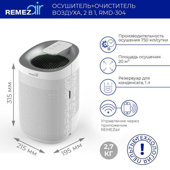 Бытовой осушитель воздуха REMEZair (РемезАир) RMD-304 отличается современным дизайном и компактными габаритными размерами. Устройство эффективно осушает воздух, удаляя избыточную влагу и предупреждая появление конденсата, плесени, вредных бактерий и затхлого запаха. В основе работы прибора лежит бескомпрессорная технология осушения воздуха, основанная на использовании элементов Пельтье. Модель оснащена Нера-фильтром для очищения воздуха. Использование очистителя+осушителя для конкретных ежеднейвных задач делает жизнь комфортнее и безопаснее.